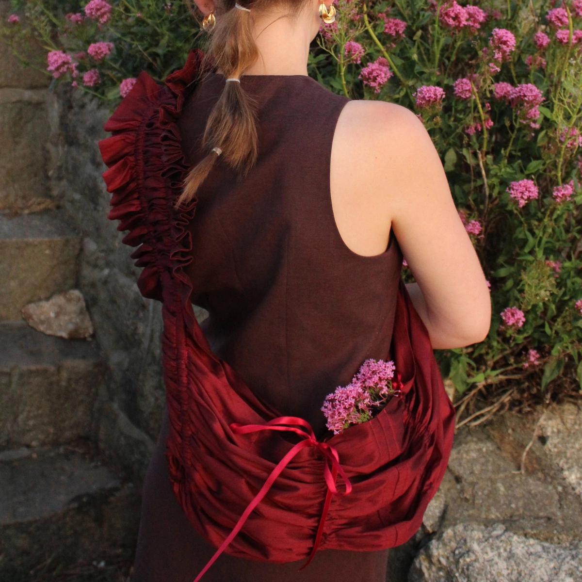 I love my bags and I’m honoured when I get asked to make one, but I’m delighted when I get to design a custom piece for someone. This is when my creativity comes to life. I love coming up with new designs and challenging myself. I get excited picking out the perfect fabric and collaborating. Recently, I made a wedding guest dress for my friend Sinéad. It gave me the opportunity to learn new garment construction techniques.