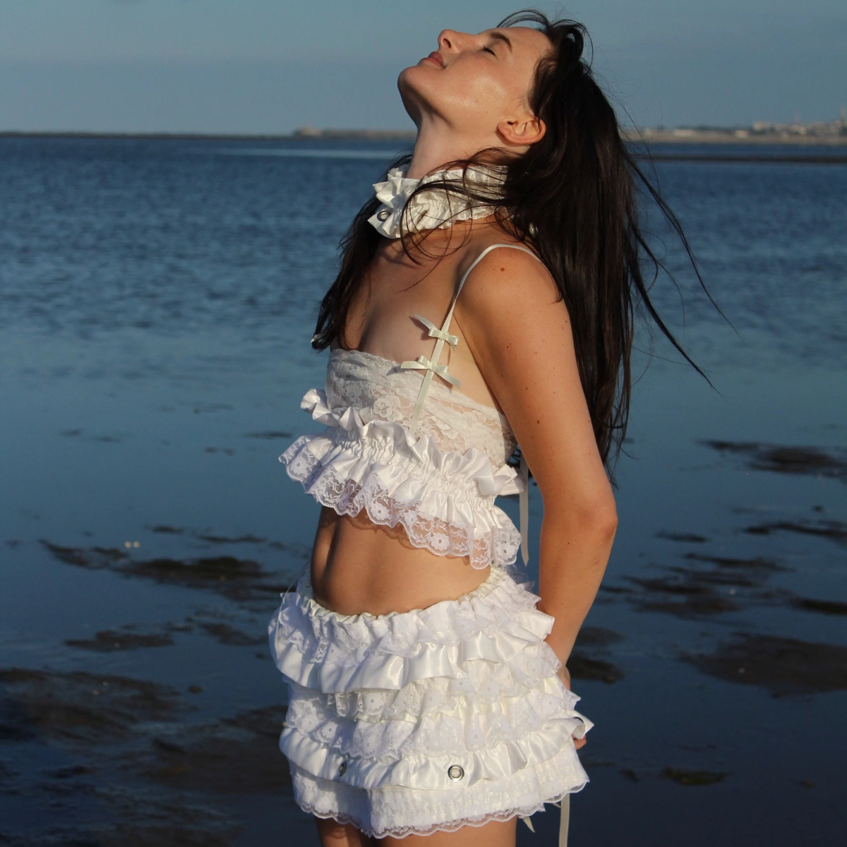 My philosophy is all about celebrating creativity and uniqueness. I like to play around with the tension between frills and edge, softness and boldness. I always follow my curiosity. My instincts are a big part of my philosophy; I don’t like having too much of a predefined idea of things, but rather, being open to any possibility.