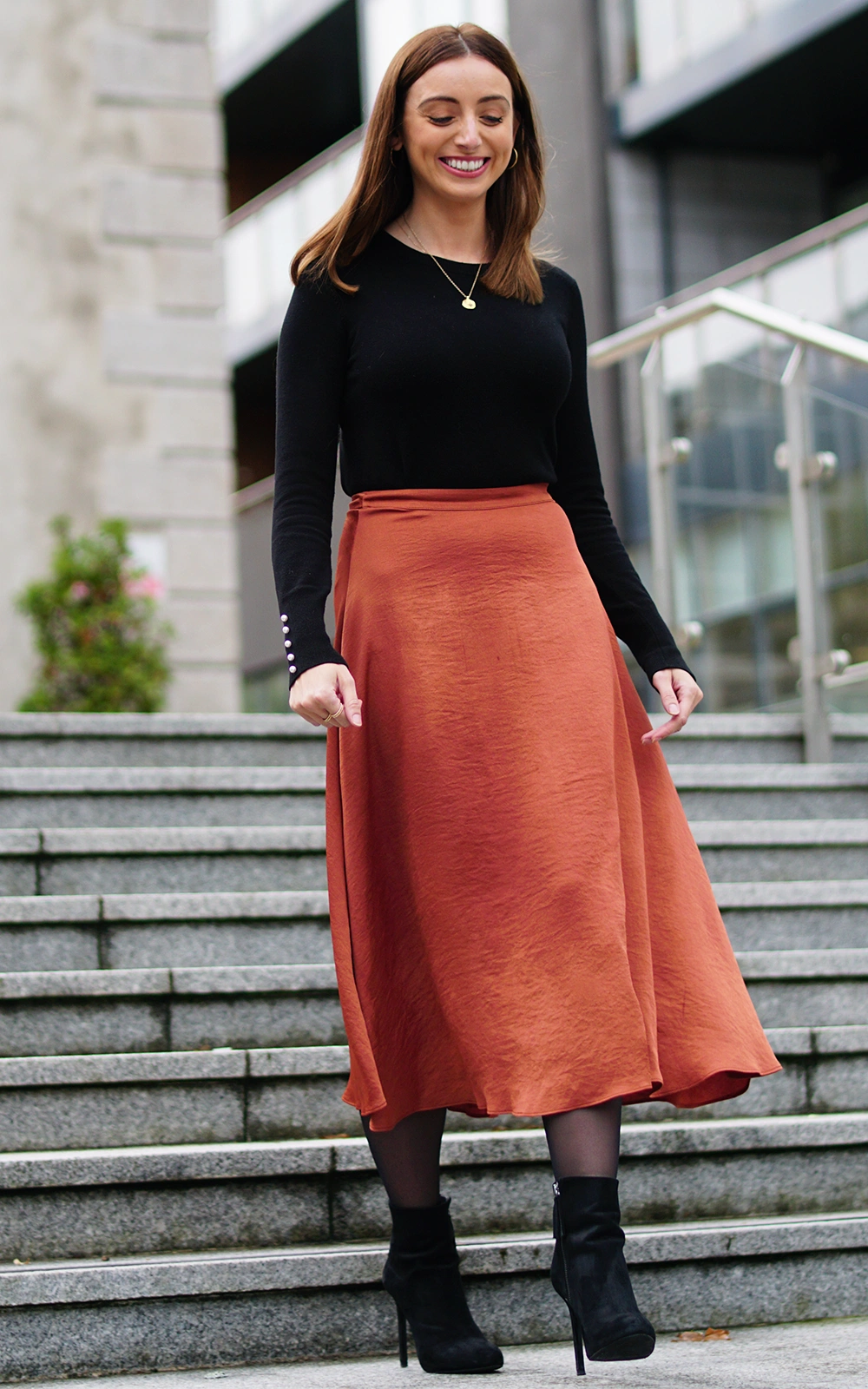 I have forgotten about the simple joy of skirts. I’m a trousers kind-of-woman by nature but lately, I have been unprecedently excited for bare legs and flowing hemlines. There are no “wrong” skirts: mini skirts are great on occasional outings, but it’s longer hem lengths that offer a kind of sassy polish – an ageless elegance. A midi skirt is the unsung hero of any wardrobe. The boldest way to wear a midi skirt? A toughened-up pair of knee-high boots, a delicate knit or a vintage chunky knit jumper in the perfect shade of millennial pink. A simple (or not so simple) one has transformative powers and here are three IMAGE staffers – and their favourite midi – to prove it.