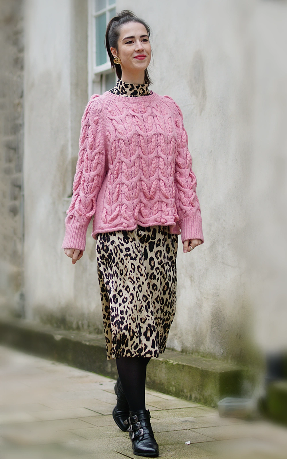 I would have never thought of myself as a ‘midi-skirt’ type of woman, but since they’ve exploded in popularity this summer, I’m really getting into them. A year or so ago, I would have thought of midi-skirts as making me look like a nun crossed with Little House on the Prairie, but having seen how they can be styled to look young and fresh, I’m sold. A midi skirt is actually very agile and easy to wear; simply throw one on and your whole outfit is done. Not to mention how comfortable they are to wear too; the right midi skirt keeps me going from early-morning meetings to after-work cocktails. The way I style my look might not be for everyone, but leopard print and pink is basically my uniform, so I feel really great in this!