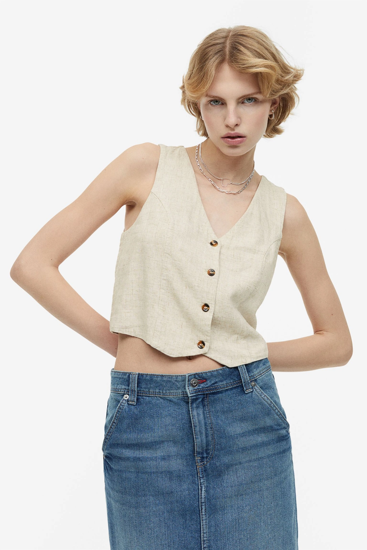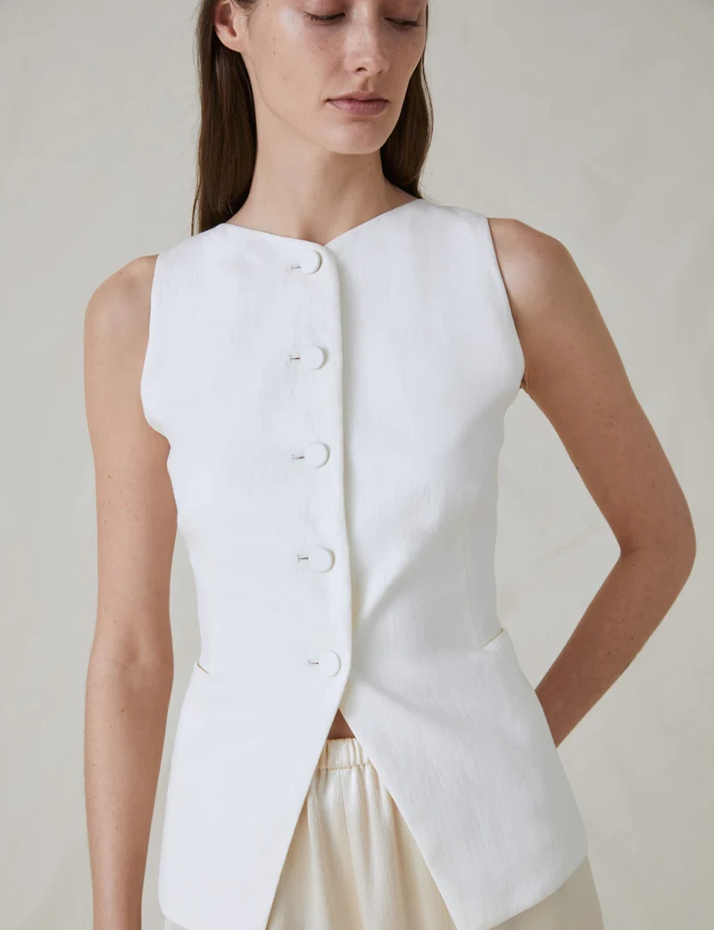 Available in an array of different styles – from deep V-necks to cropped, linen, tweed and denim – they’re a great addition to your wardrobe as you can mould them to fit just about any dress code. Pair with denim cutoffs and docs to nail the Glastonbury aesthetic, team with matching suit trousers for an office-appropriate getup or wear with a matching linen skirt like Sofia Richie did; waistcoats pretty much tick all style boxes, which is why they’re such a great investment.