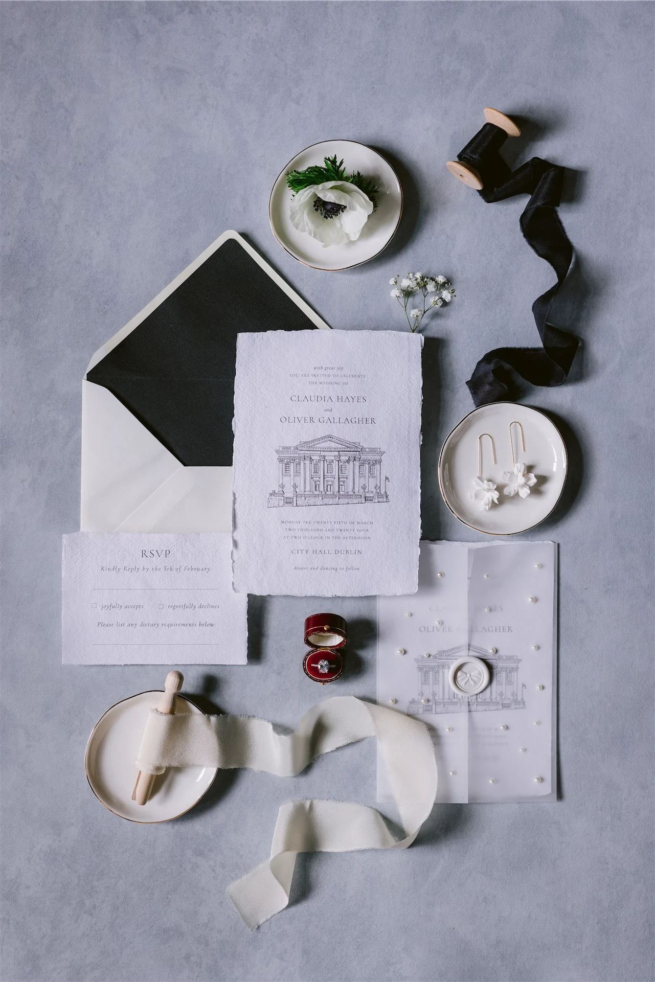 Planning a city wedding? Be sure to peruse this gorgeous photoshoot for inspiration. From elegant wedding gowns and sleek suits to elevated table decor and stationery, this collaboration features the best of Irish vendors and award-winning design.