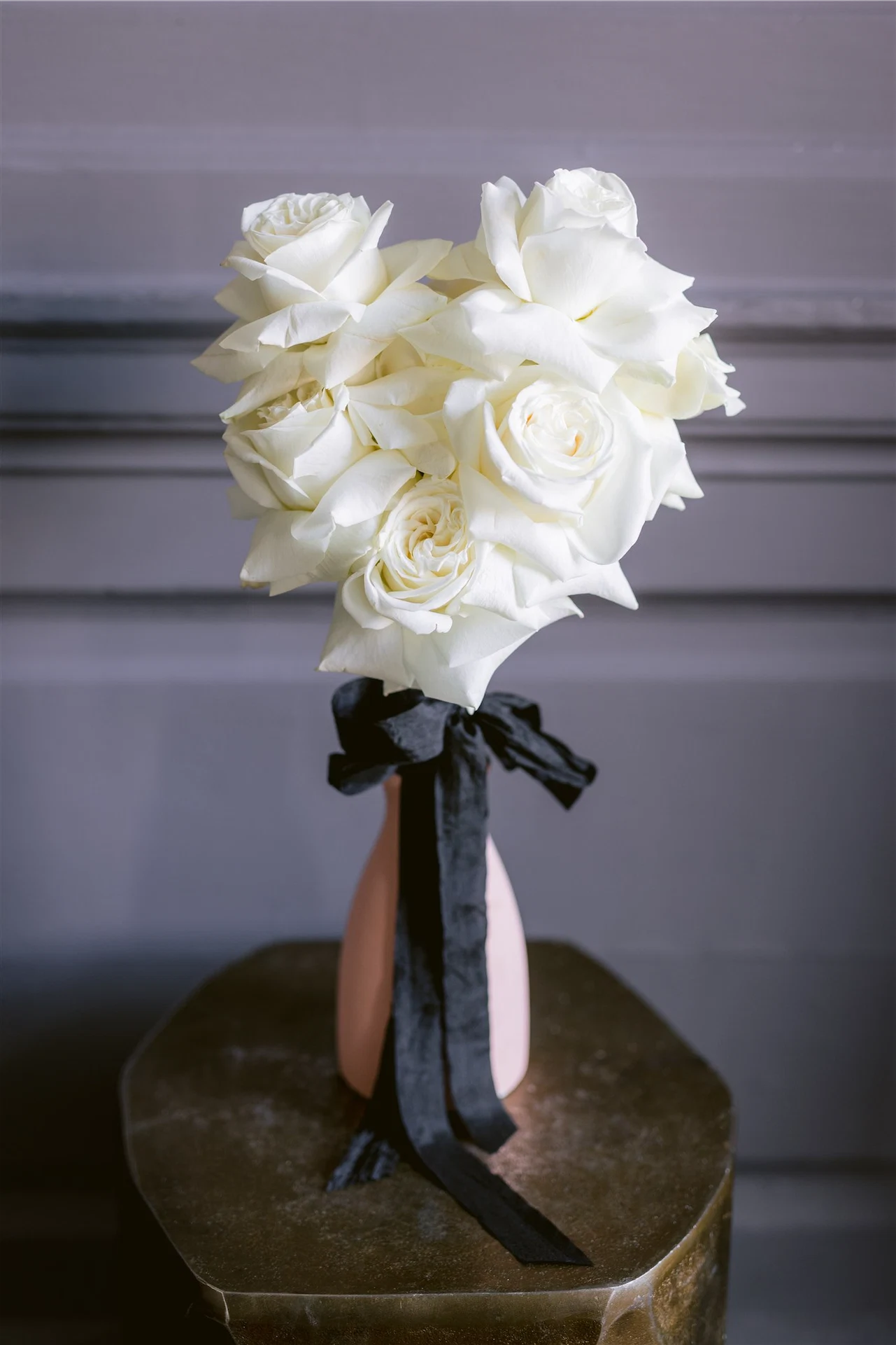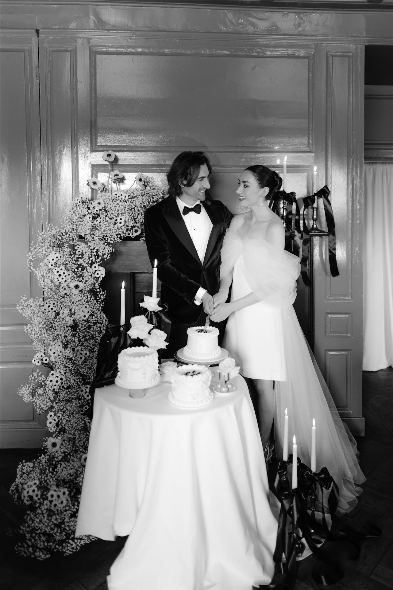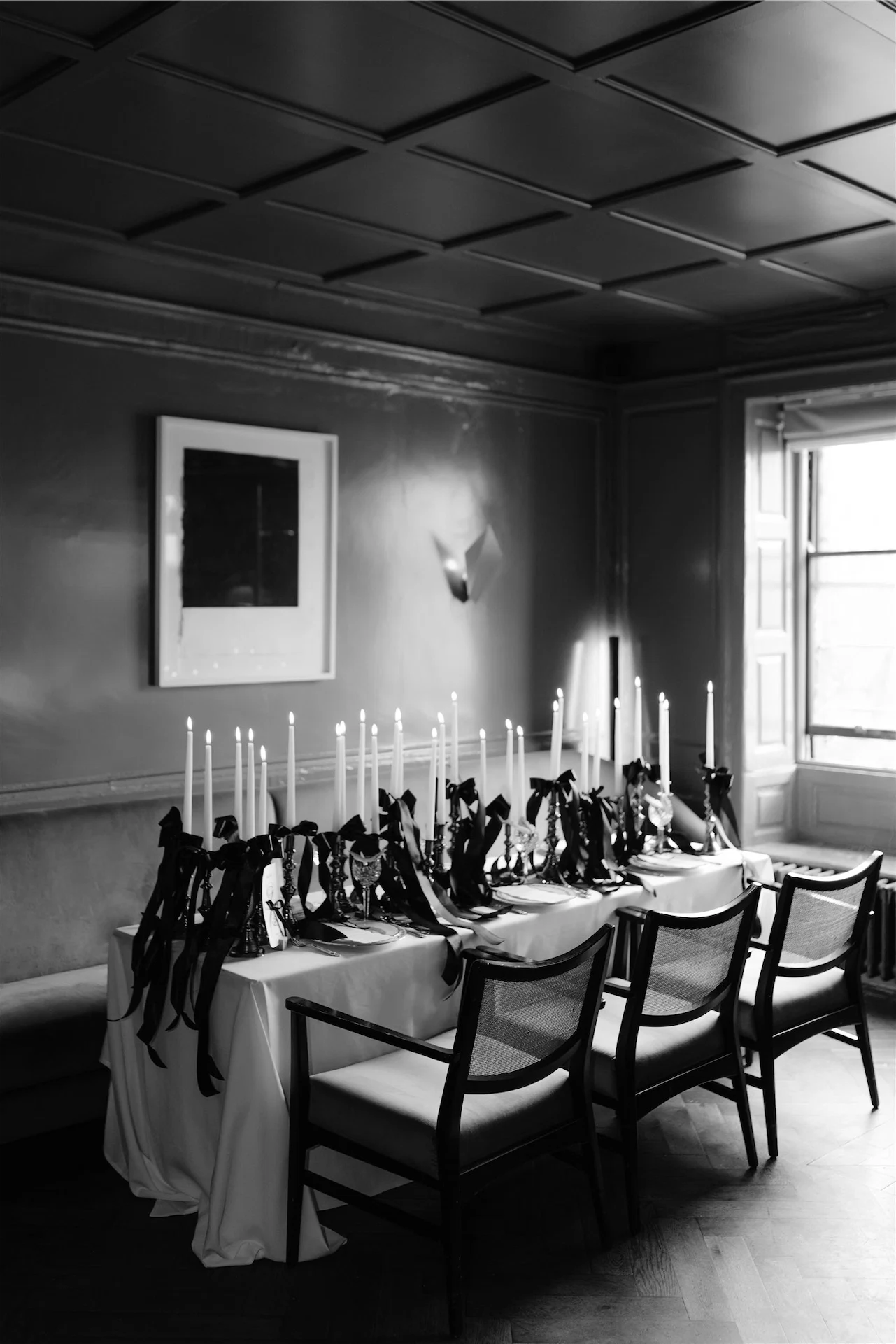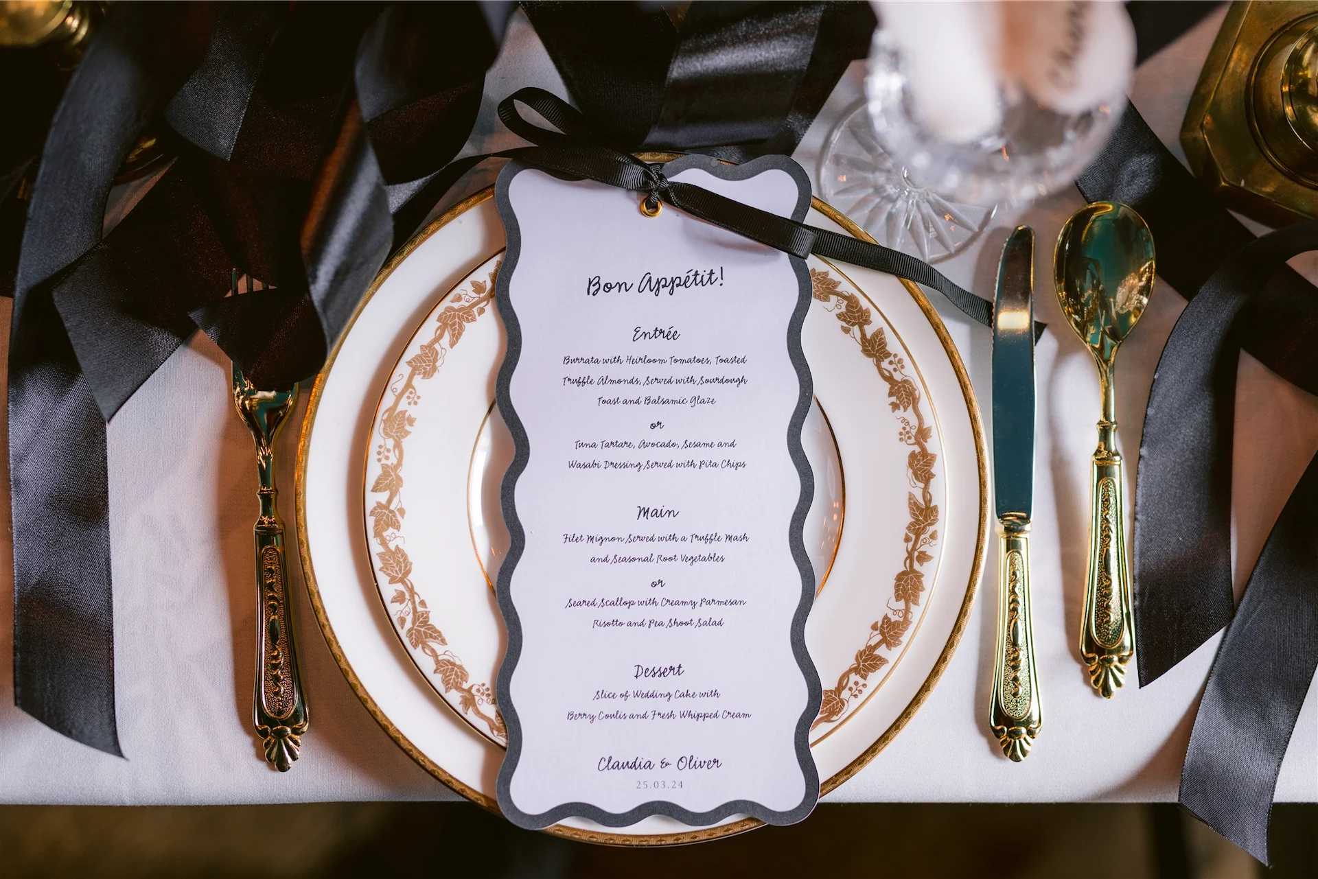The versatility of the theme is showcased through the tasteful details, alongside three distinct table settings, each offering its own interpretation. From the abundance of candles with cascading ribbons in the first setting, to romantic anemones in the second and classic roses in the third, every detail is thoughtfully curated to blend modernity with vintage seamlessly.