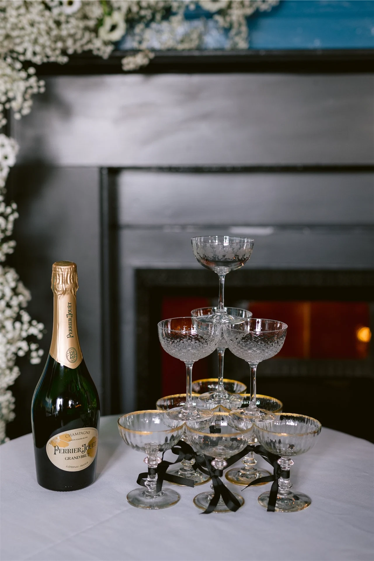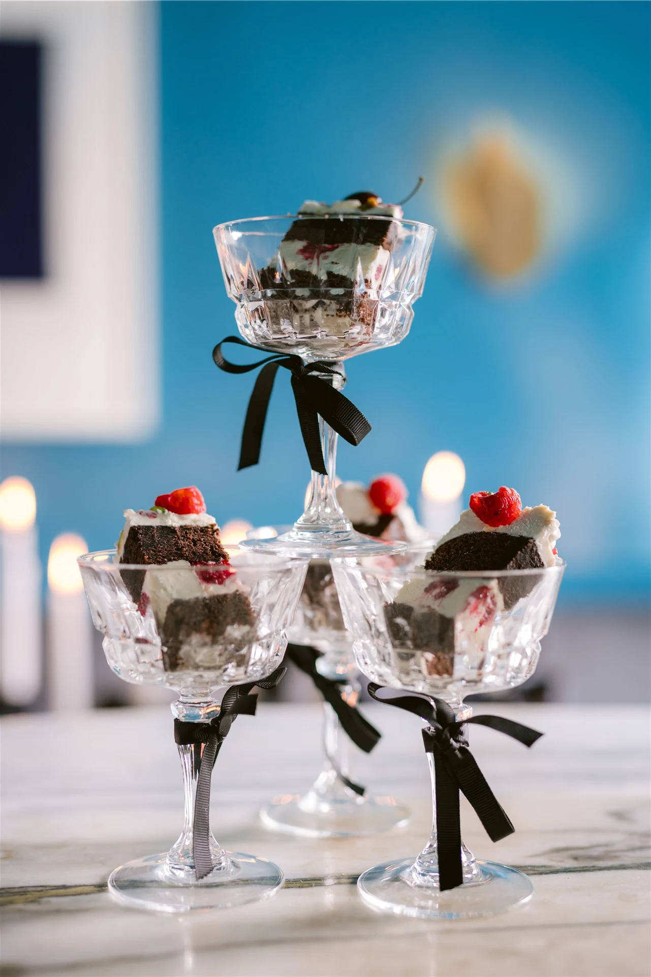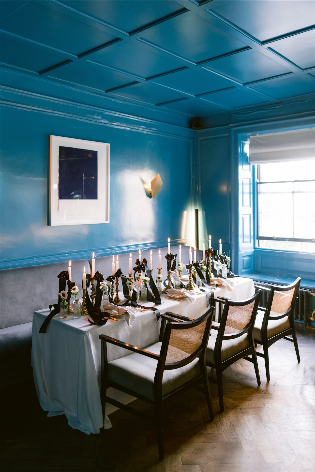 Set in the charming blue room of The Grayson in Dublin, this concept marries urban chic with vintage elegance in a captivating display. Against the striking backdrop of black, white, and gold accents, the turquoise walls of The Grayson’s blue room create a mesmerising contrast – modern opulence at its finest.