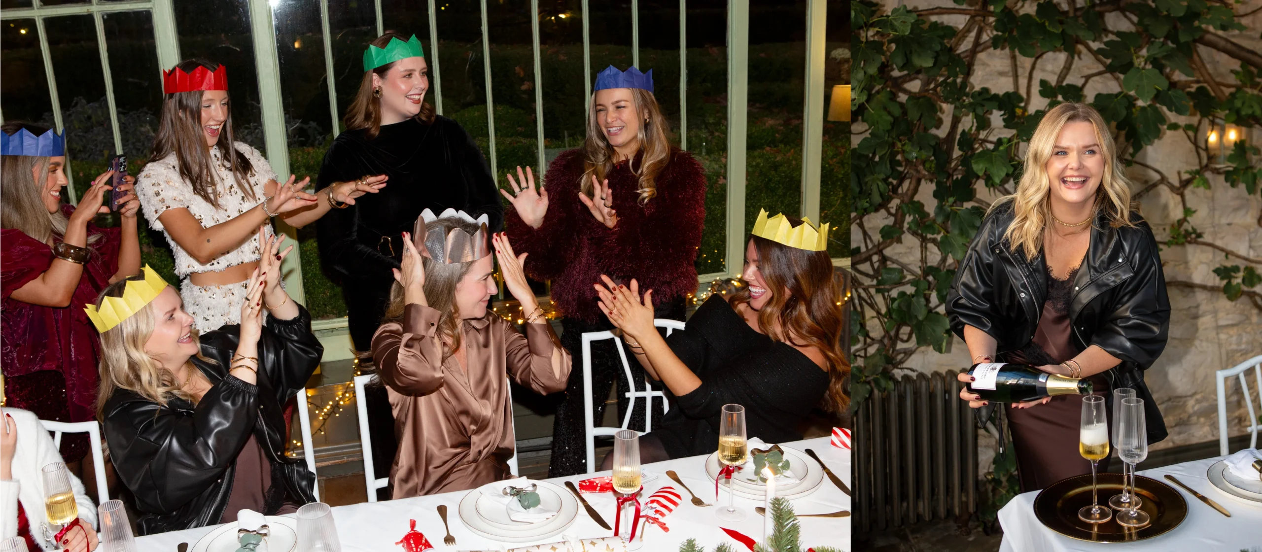 Bedecked in the jewel tones and sequins of F&F’s, it was a glittering, sophisticated dining affair – though the Christmas cracker paper hats did inevitably make an appearance.